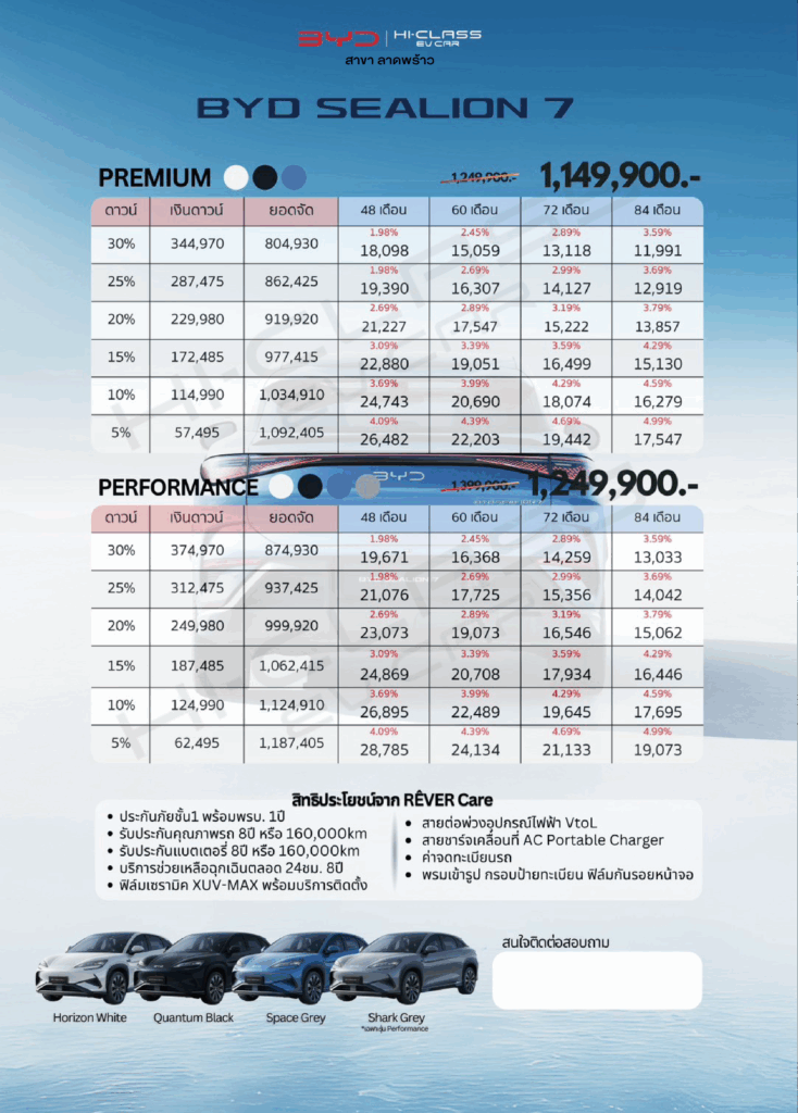 BYD SEALION 7 มีรุ่นย่อยสองรุ่น ดังนี้